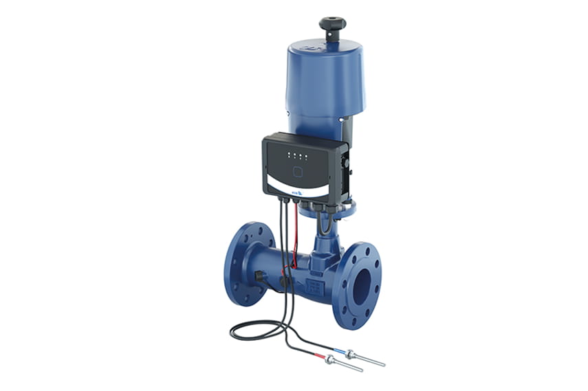 Regulační ventil s teplotními čidly na přívod a zpátečku, s ultrazvukovým měřením průtoku, výpočtem objemu dodávané tepla či chladu, servopohonem a regulátorem s přednastavenými funkcemi pro typické procesy ve vytápění a chlazení.