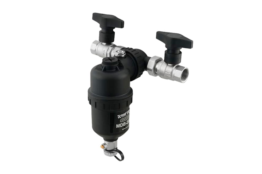 Odkalovač RAFTEC DB-2020, navržený speciálně pro autonomní topné systémy. Dokáže odstranit téměř všechny škodlivé částice obsahující železo a jeho oxidy, které se nahromadily v topném systému, a chránit tak celý autonomní topný systém.